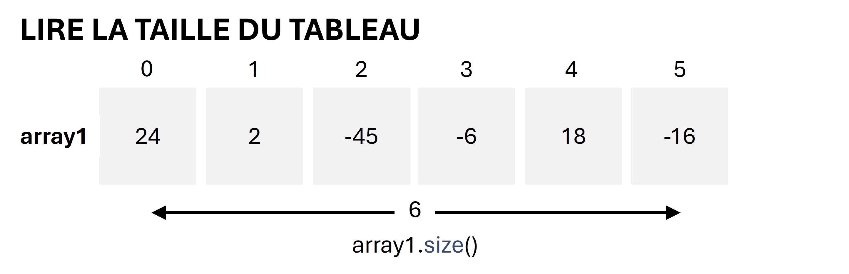 - Créer une variable \(myArraySize\) et lui affecter la taille du tableau \(myArray\)